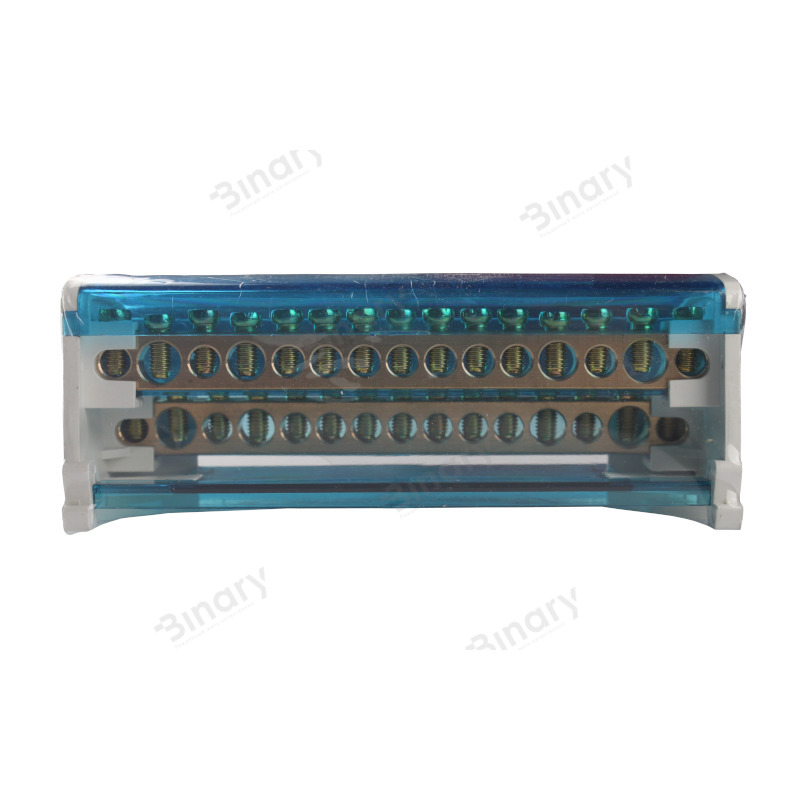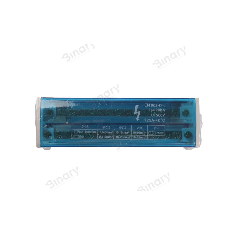 Шина нульова в корпусі (крос-модуль) EH-BNS2X15 від компанії "Electro House" призначена для електричного і механічного з'єднання нульових, захисних і фазних провідників. Вона має корпус з термостійкого самозатухаючого пластику в якому розміщені нульові шини ізольовані один від одного перегородками і відкидну кришку з прозорого пластику, яка дозволяє візуально контролювати якість з'єднання дротів, а так само запобігає випадковому попаданню сторонніх предметів. Так само кришка дає захист від випадкового дотику до струмоведучих частин модуля. Шини виготовлені з електротехнічної латуні. Крос-модуль має сучасний естетичний вигляд і компактні розміри. Завдяки використанню цього пристрою розводка кабелів в електрощиті або електрошафі стане не лише безпечнішою і компактнішою, але і набуде естетичнішого вигляду. Завдяки наочності розподілу кабелів, яку дає крос-модуль, ремонтні або монтажні роботи займатимуть значно менше часу. Шина нульова в корпусі має кріплення для установки на DIN рейку, що дозволяє її встановити впродовж декількох секунд. Дроти фіксуються в нульовій шині за допомогою гвинтів, що робить з'єднання надійним і дозволяє використати цей пристрій багатократно. Завдяки конструктивним особливостям крос-модуль можна використати і як перехідний клемник для кабелю більшого перерізу якщо необхідно підключити декілька кабелів меншого перерізу, що практично і зручно. Ця модель крос-модуля складається з двох нульових шин, кожна з яких містить по п'ятнадцять кабельних виводів. Діаметр кабельних виводів : 2х 8,5 мм, 2х7, 5 і 11х6 мм для кожної шини. Її номінальний струм - 90А. Робоча температура для цього виробу від - 40 до 50оС при середньому значенні відносної вологості не більше 90%. Переріз провідників 2,5 – 16 мм2, що підключаються . Має клас захисту IP20. Для тривалої і надійної експлуатації нульової шини навколишнє повітря не має бути засмічене парами солей, корозійними або запалюючими газами.