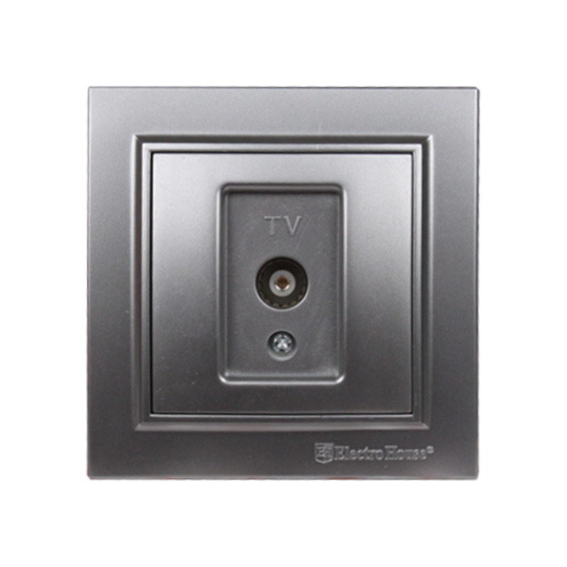 Розетка телевізійна кольору срібний камінь EH-2113-ST серії Enzo компанії ElectroHouse дуже корисна при оформленні офісних або студійних приміщень. Її непомітний дизайн і незвичайне забарвлення дозволяє їй добре вписатися в будь-який інтер'єр. Ця розетка Elso дає можливість акуратно і безпечно підключити телевізійні, супутникові або інші проводи, призначені для передачі аналогових сигналів. Вона оснащена стандартним TV-роз'ємом і виконана з приємного на дотик термостійкого довговічного пластику. Ступінь захисту від проникнення пилу і вологи IP22.