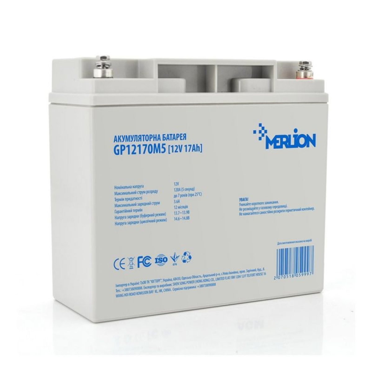 Аккумулятор 12V-17Ah merlion AGM GP1218M5 12V 17Ah (181x77x167) Q4 свинцово-кислотная, не обслуживающая батарея с номинальным напряжением 12 вольт. Также эта батарея характеризуется низким уровнем саморазряда. Используется в системах безопасности, электронных кассовых аппаратах, электронном тестовом оборудовании, системах аварийного освещения, геофизическом и геодезическом оборудовании.