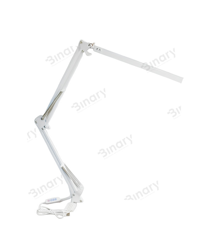 Светильник питается через USB-A порт, что делает его совместимым с компьютерами, адаптерами и павербанками – идеально для гибкого, мобильного использования. Крепление на струбцине гарантирует надежную фиксацию на столе или полке, а белый корпус придает изделию изящества.