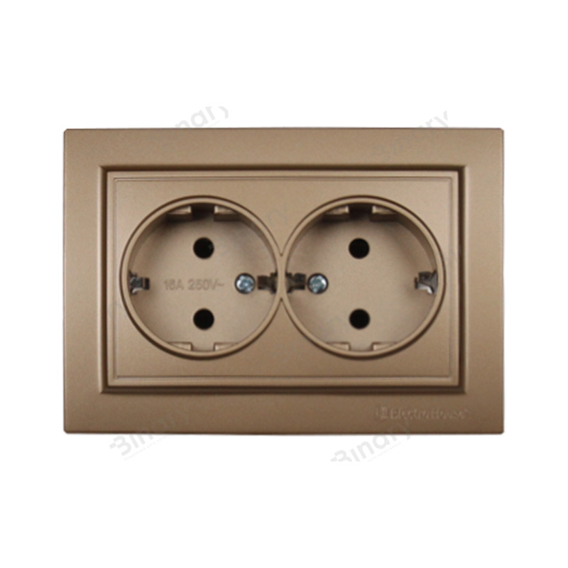 Розетка двойная с заземлением Термопластик 16 A Роскошно-золотой