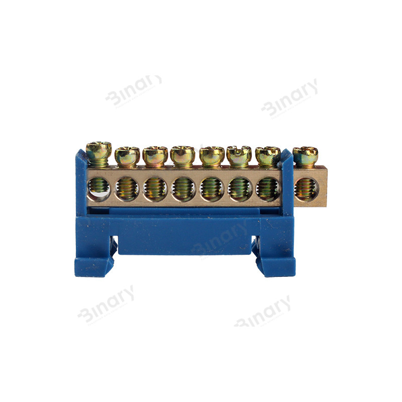Шина нулевая 8 отверстий На DIN рейку EH-BN-8 от компании Electro House предназначена для электрического и механического соединения нулевых, защитных и фазных проводников. Она имеет специальный крепеж для установки на DIN рейку, который одновременно является для него изолятором. Это изделие отличается высоким качеством, надежностью и долговечностью. Соответствует мировым и европейским стандартам качества. На сегодняшний день просто невозможно представить сборку электрощита без применения подобных устройств. Ведь использование этого изделия существенно облегчит работу электриков и сделает его более безопасным. Если ранее надежная и безотказная работа УЗО обеспечивалась установкой отдельно взятых нулевых шин к каждому отдельно взятому устройству защитного отключения, то теперь можно подвести общую нулевую проволоку к шине и уже из нее развести от созданного таким образом блока к другим составным частям созданной системы. Благодаря этому увеличивается надежность и сохранность всей системы в целом. Крепится нулевая шина на DIN рейку с помощью щеколд и не требует для установки дополнительных материалов и специальных инструментов, а компактность увеличивает удобство дальнейшего ее использования. Также она имеет современный эстетический внешний вид. Конструктивно эта модель является токопроводящей жилой в изолирующем креплении из самозатухающего пластика. Токопроводящая жила изготовлена из электротехнической латуни и включает в себя отверстия с зажимными винтами для крепления в ней проводников (восемь кабельных выводов) и имеет сечение 6х9 мм. Номинальный ток для этой модели – 100А. Ее размеры 6х9х58 мм. Длина крепежа 50 мм. Ширина крепежа 21 мм. Диаметр отверстия для монтажа проводника – 5 мм. Рабочая температура для данного изделия от -40 до 50°С при среднем значении относительной влажности не более 90. Для длительной и надежной эксплуатации этого изделия окружающий воздух не должен быть засорен парами солей, коррозионными или зажигающими газами. Для обеспечения качественного соединения, а также упрощения дальнейшего обслуживания, шина выполнена единственным токопроводящим элементом. Ее монтаж прост и не занимает много времени.
