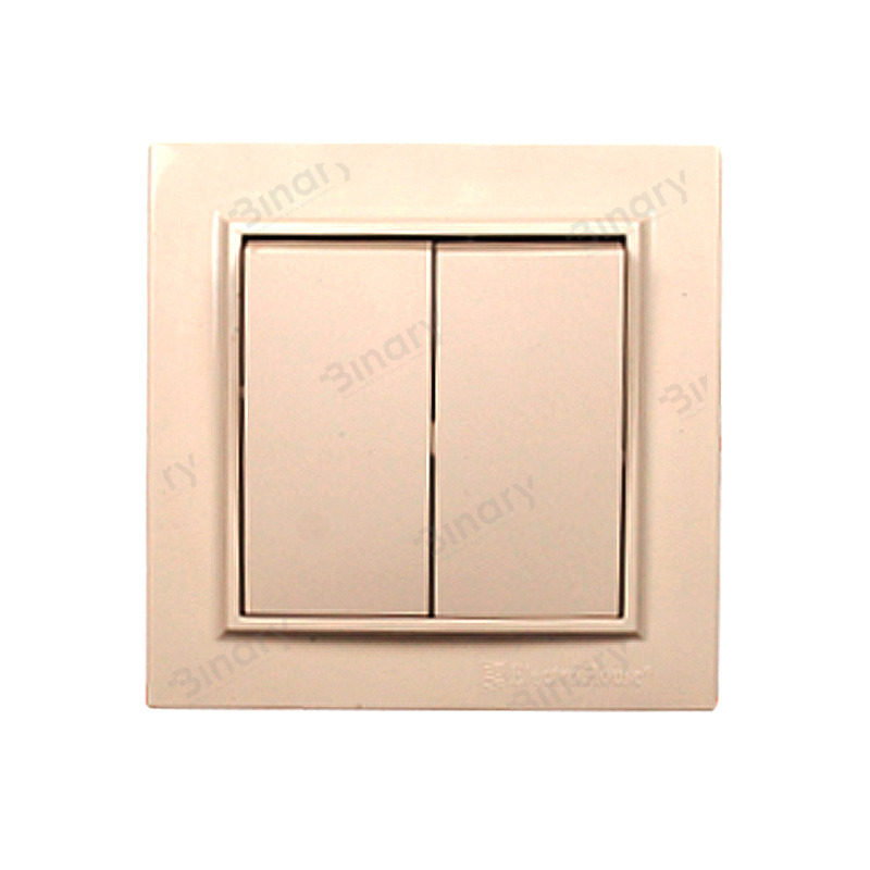 Выключатель двойной предназначен для подачи напряжения двум потребителям питания. Возможно применение как для двух отдельных источников света, так и для разделения напряжения одного осветительного прибора, например, люстры, по схеме 3-2, 3-3 и подобным образом. Выполнен в нейтральном цвете латте, не броский и гармонично впишется в любой интерьер. Не конфликтует с цветовыми гаммами декора и стиля помещения.