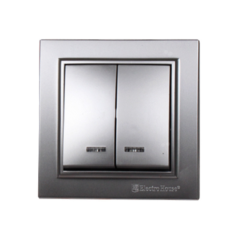 Выключатель с подсветкой двойной Enzo Серебряный камень