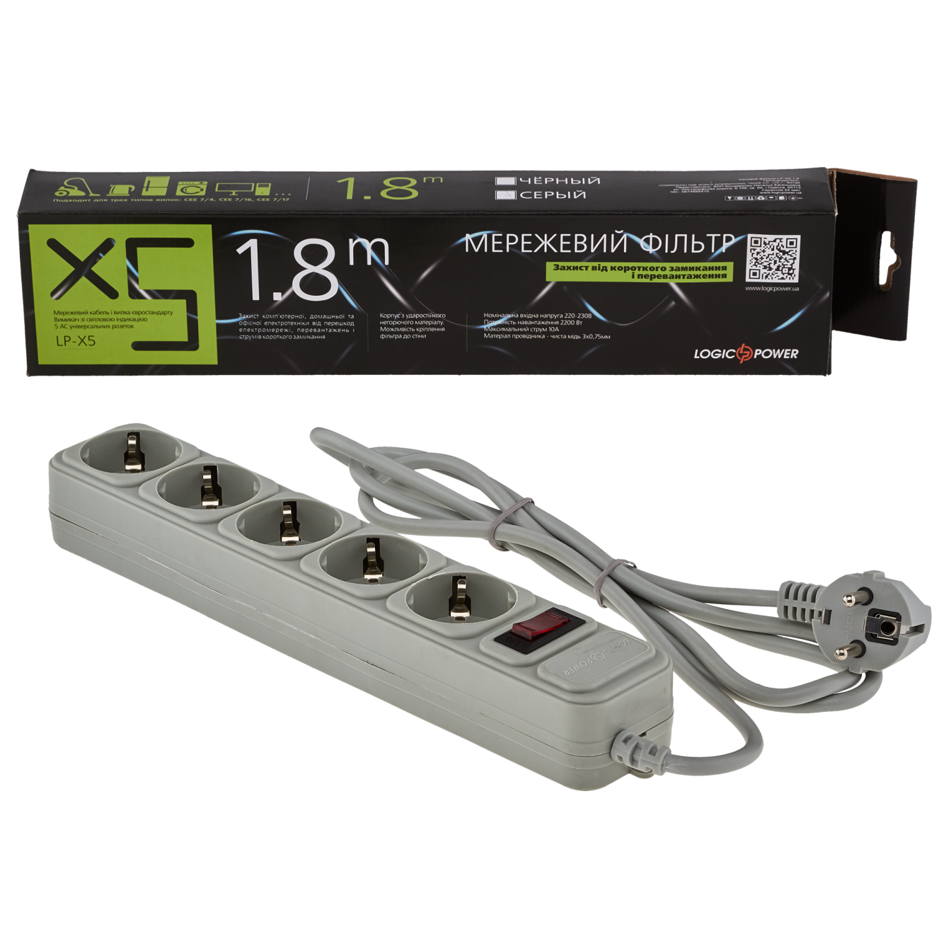 Мережевий фільтр LP-X5, 2 м Grey