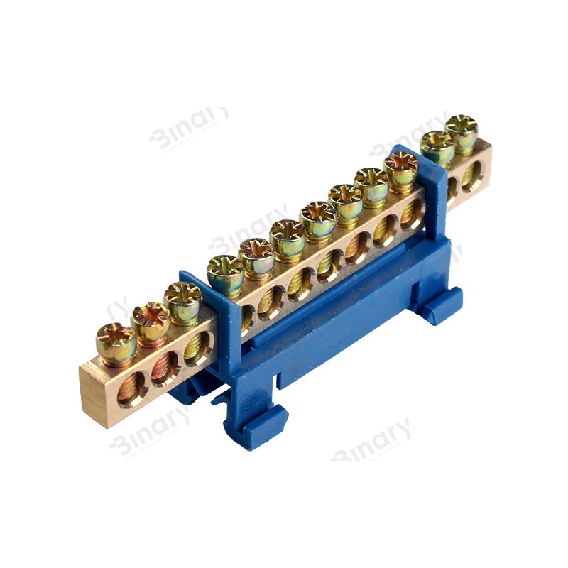 Шина нульова 12 отворів На DIN рейку EH-BN-12 від компанії Electro House призначена для електричного і механічного зєднання нульових, захисних і фазних провідників. Вона має спеціальне кріплення для установки на DIN рейку, яке одночасно є для неї ізолятором. Цей виріб відрізняється високою якістю, надійністю і довговічністю. Відповідає світовим і європейським стандартам якості. На сьогодні просто неможливо представити збірку електрощита без застосування подібних пристроїв. Адже використання цього виробу істотно полегшить роботу електриків і зробить її безпечнішою. Якщо раніше надійна і безвідмовна робота ПЗВ забезпечувалася установкою окремо взятих нульових шин до кожного окремо взятого пристрою захисного відключення, то тепер можна підвести загальний нульовий дріт до шини і вже з неї розвести від створеного таким чином блоку до інших складових частин створеної системи. Завдяки цьому підвищується надійність і безпека усієї системи в цілому. Кріпиться нульова шина на DIN рейку за допомогою клямок і не вимагає для установки додаткових матеріалів і спеціальних інструментів, а компактність збільшує зручність подальшого її використання. Так само вона має сучасний естетичний зовнішній вигляд. Конструктивно ця модель є струмопровідною жилою в ізолюючому кріпленні з самозатухаючого пластику. Струмопровідна жила виготовлена з електротехнічної латуні і містить в собі отвори із затискними гвинтами для кріплення в ній провідників (дванадцять кабельних виводів) і має переріз 6х9 мм. Номінальний струм для цієї моделі - 100А. Її розміри 6х9х82 мм. Довжина кріплення 50 мм. Ширина кріплення 21 мм. Діаметр отвору для монтажу провідника - 5 мм. Робоча температура для цього виробу від - 40 до 50°С при середньому значенні відносної вологості не більше 90. Для тривалої і надійної експлуатації цього виробу навколишнє повітря не має бути засмічене парами солей, корозійними або запалюючими газами. Для забезпечення якісного зєднання, а також спрощення подальшого обслуговування, шина виконана єдиним струмопровідним елементом. Її монтаж простий і не займає багато часу.