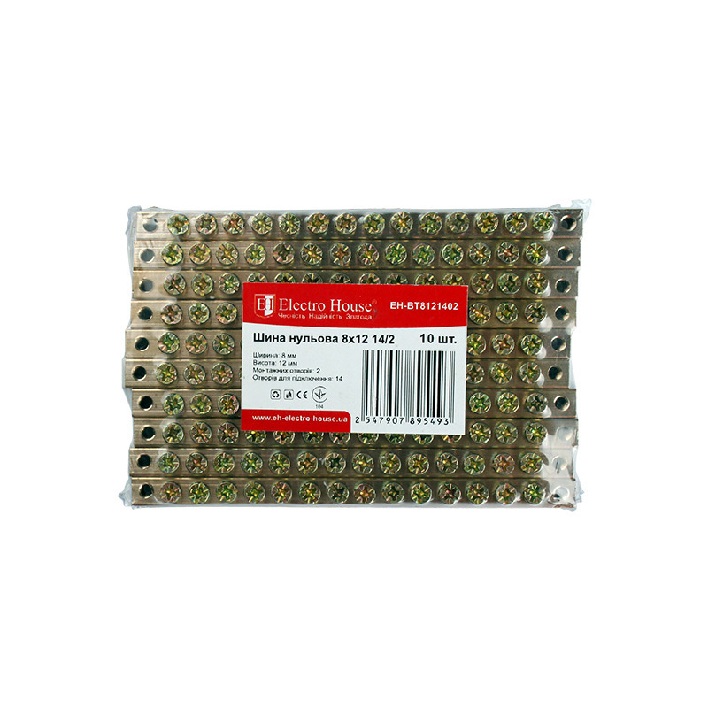 Шина нульова 8х12 14/2 EH - BT8121402 від компанії "ElectroHouse" призначена для електричного і механічного з'єднання нульових, захисних і фазних провідників. Вона має два отвори для установки по краях шини. Встановлюється на ізолятор. Цей виріб відрізняється високою якістю, надійністю і довговічністю. Відповідає світовим і європейським стандартам якості. На сьогодні просто неможливо представити зборку електрощита без застосування подібних пристроїв. Адже використання цього виробу істотно полегшить роботу електриків і зробить її безпечнішою. Якщо раніше надійна і безвідмовна робота УЗО забезпечувалася установкою окремо взятих нульових шин до кожного окремо взятого облаштування захисного відключення, то тепер можна підвести загальний нульовий дріт до шини і вже з неї розвести від створеного таким чином блоку до інших складових частин створеної системи. Завдяки цьому підвищується надійність і безпека усієї системи в цілому. Конструктивно ця модель є струмопровідною жилою без ізоляції. Струмопровідна жила виготовлена з електротехнічної латуні і містить в собі отвори із затискними гвинтами для кріплення в ній провідників (14 кабельних виводів) і має ширину 8 мм і висоту 12 мм. Діаметр отворів для монтажу провідників 6 мм. Номінальна напруга для цієї моделі - 400В. Номінальний струм - 125А. Робоча температура для цього виробу від - 40 до 50оС при середньому значенні відносної вологості не більше 90%. Для тривалої і надійної експлуатації навколишнє повітря не має бути засмічене парами солей, корозійними або запалюючими газами. Для забезпечення якісного з'єднання, а також спрощення подальшого обслуговування, шина виконана єдиним струмопровідним елементом. Її монтаж простий і не займає багато часу.